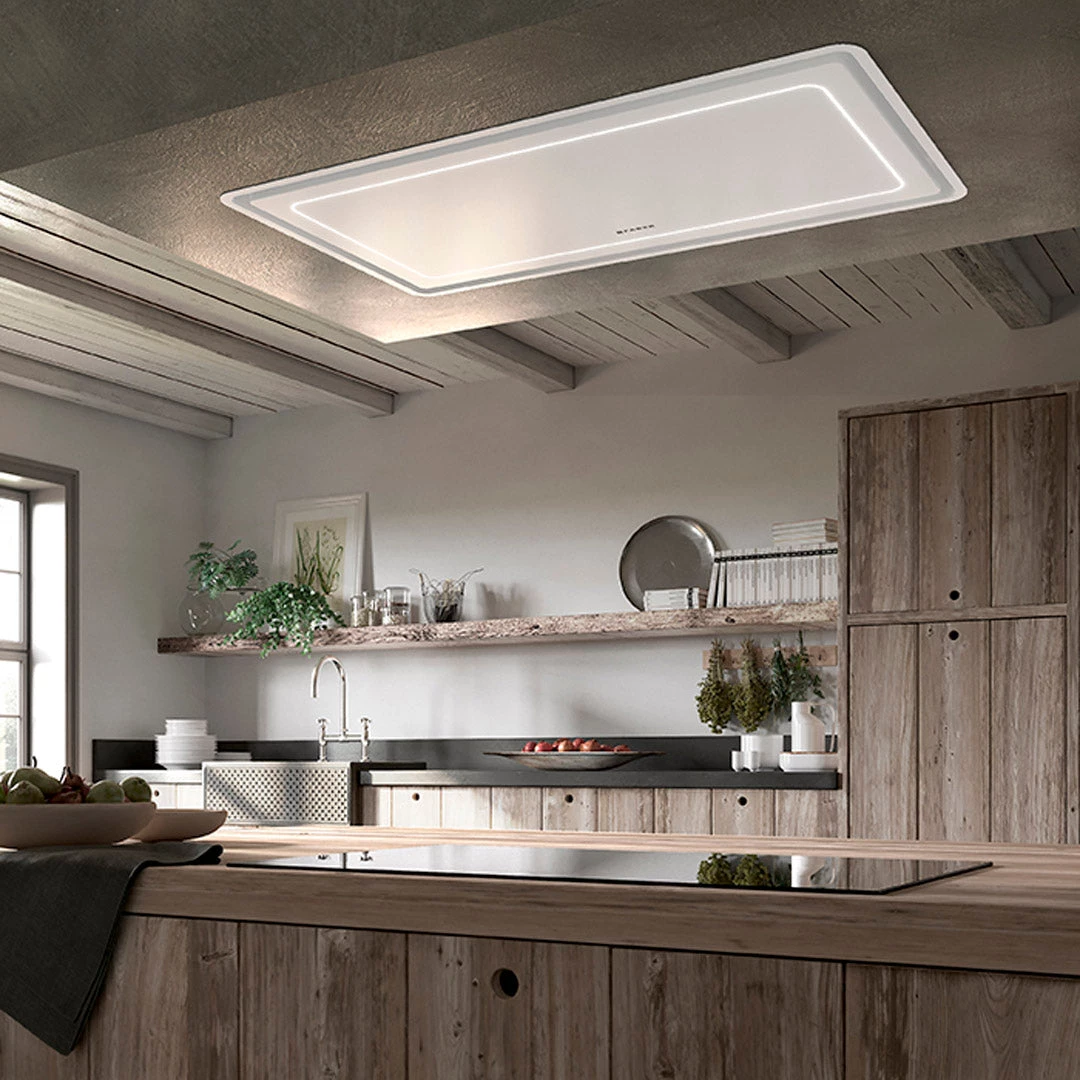 The High-Light hood features a white matte panel that fits into the ceiling while extracting any impurities with its perimeter aspiration.