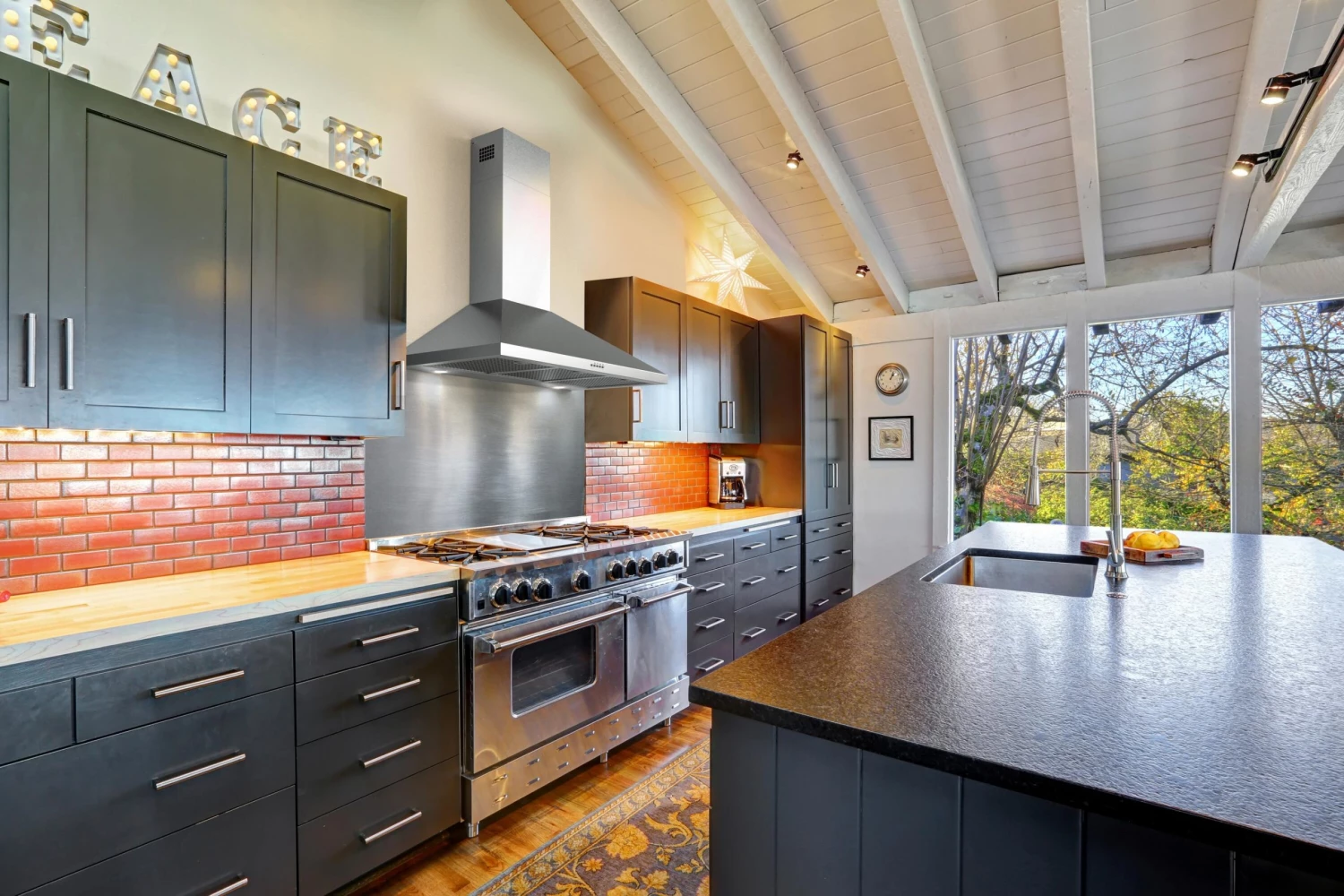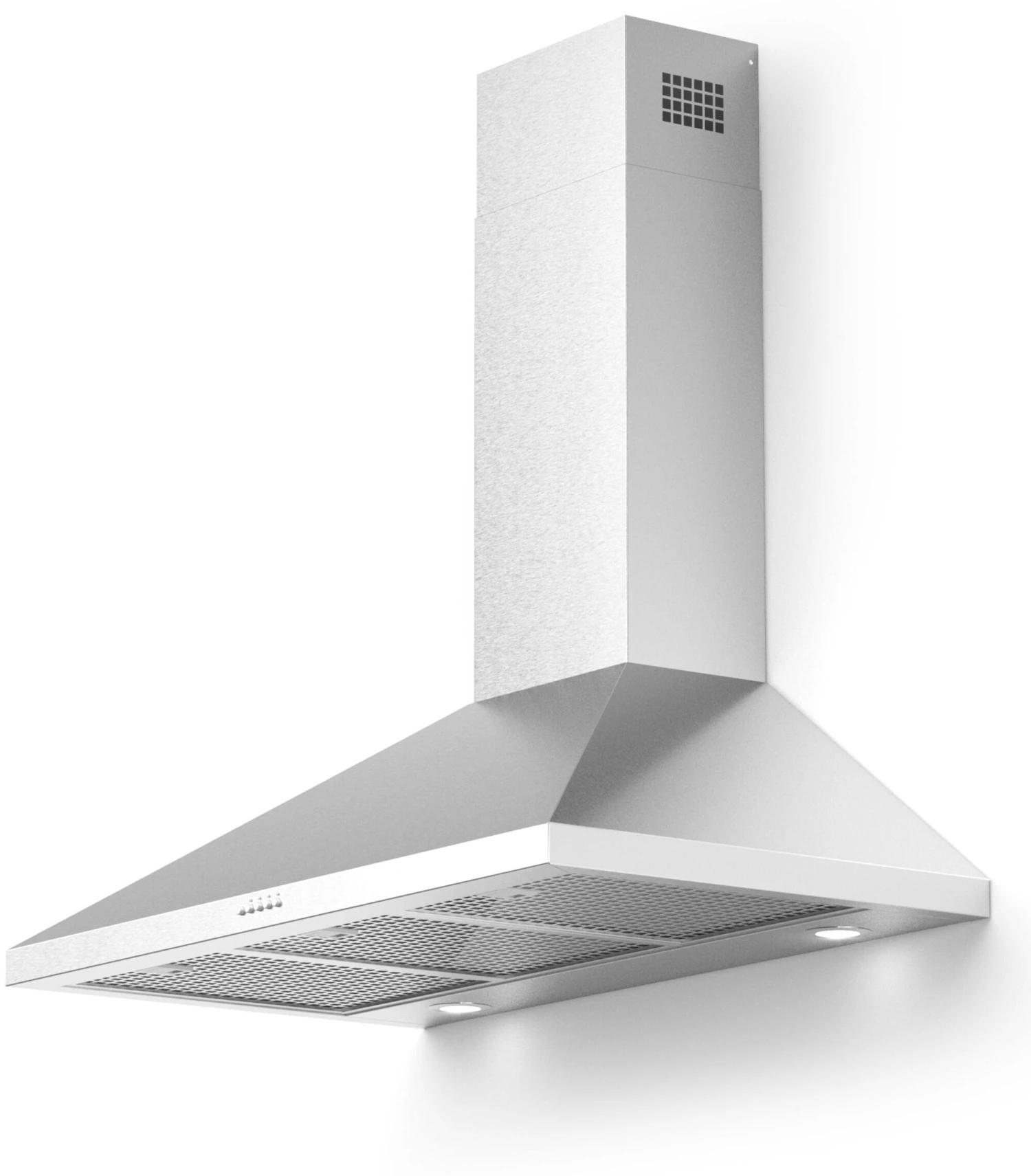 This Italian Bravo wall mount range hood by Forte offers a heavy duty blower with 600 CFM to handle odors and fumes from your kitchen. It also features LED lighting. time delay shut off and indicator lights for grease filer maintenance.