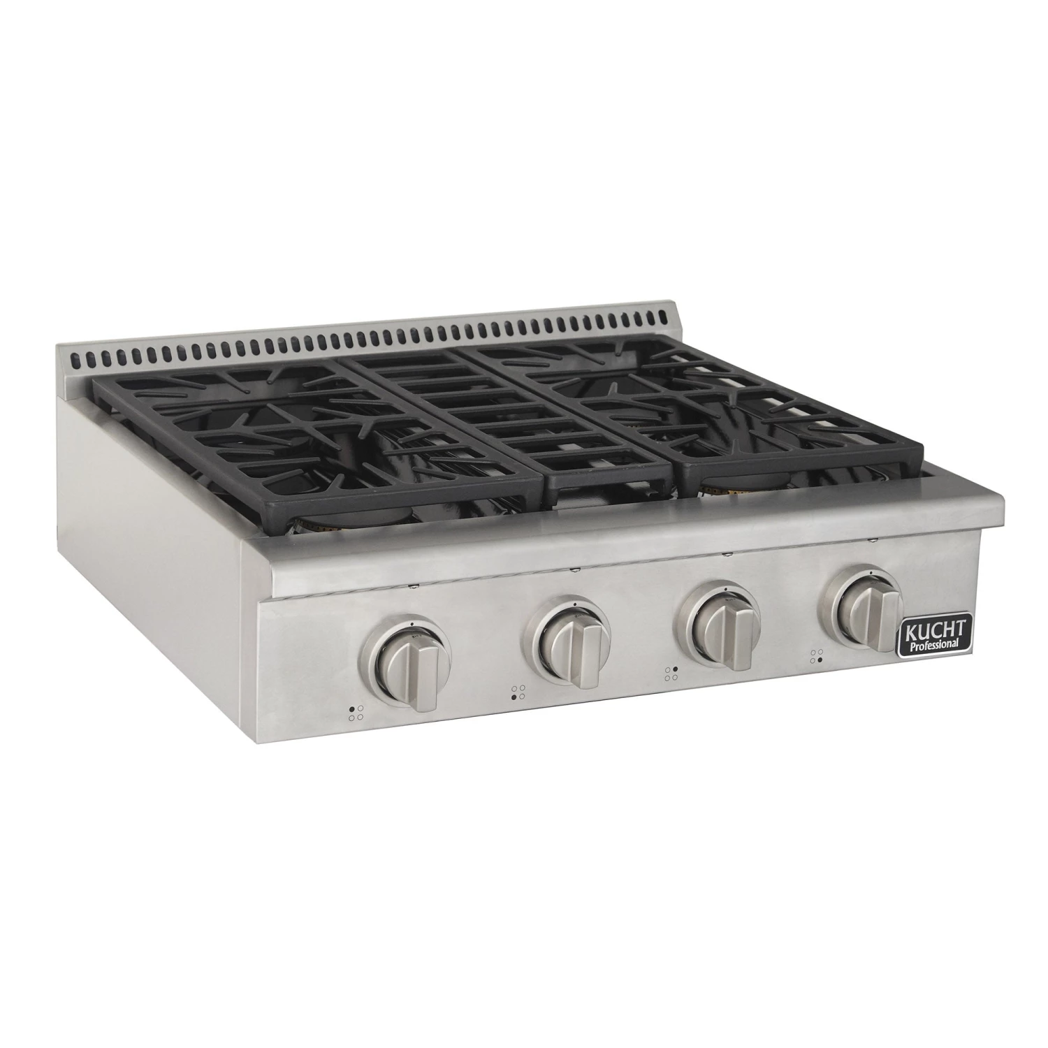 This professional grade Range-Top boasts 4 individual burners – and now comes with two high intensity 18,000 BTU burners.