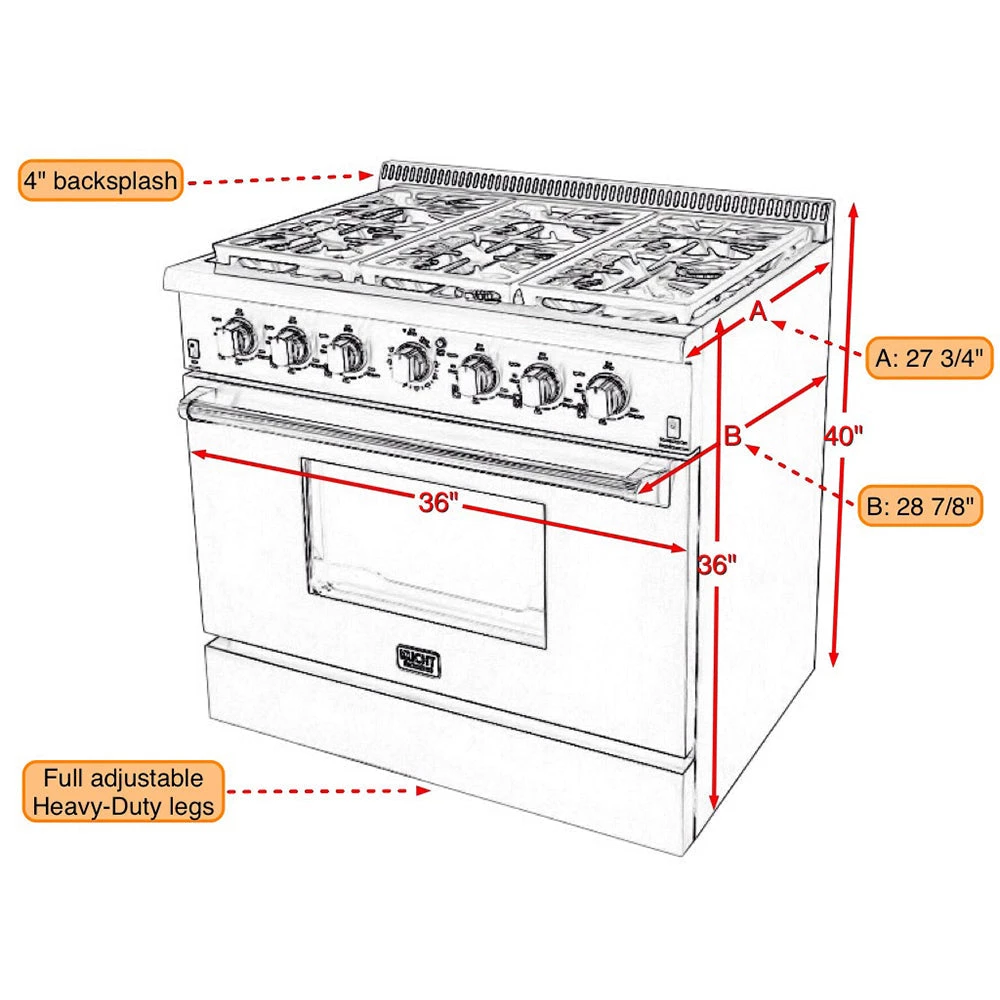 Overall Height: 36″ (40″ with backsplash) Overall Width: 36″ Overall Depth: 28-7/8″