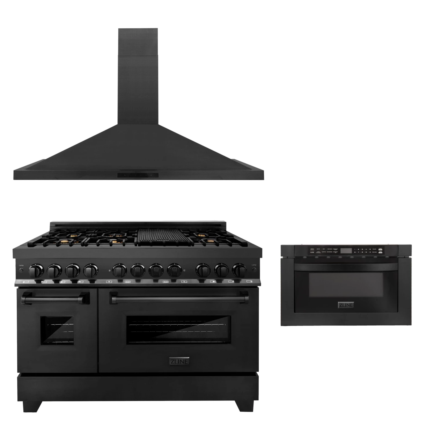 Shop Attainable Luxury® with the ZLINE Kitchen and Bath Kitchen Appliance Package – featuring 48″ Black Stainless Steel Duel Fuel Range (RAB-BR-48), 48″ Convertible Vent Range Hood In Black Stainless Steel (BSKBN-48), and the 24″ Microwave Drawer (MWD-1). Save more on your dream kitchen when you bundle. Free shipping on all orders.