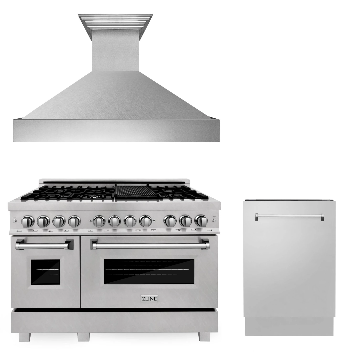 Shop the ZLINE 3-Piece Appliance Package. Completely elevate your kitchen with the ultimate ZLINE kitchen appliance package – featuring the ZLINE 48″ Dual Fuel Range, 24″ Tall Tub Dishwasher with 3rd Rack & 48″ DuraSnow Stainless Steel Range Hood. Save more when you purchase as a package and leave more in the budget for your dream home.