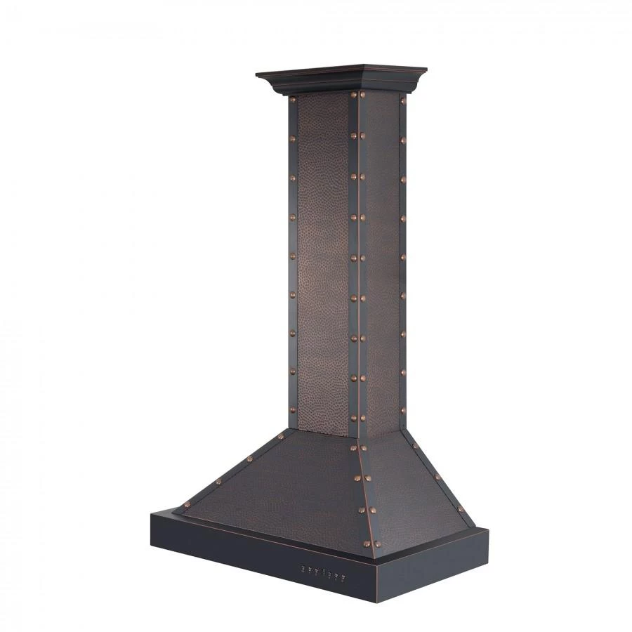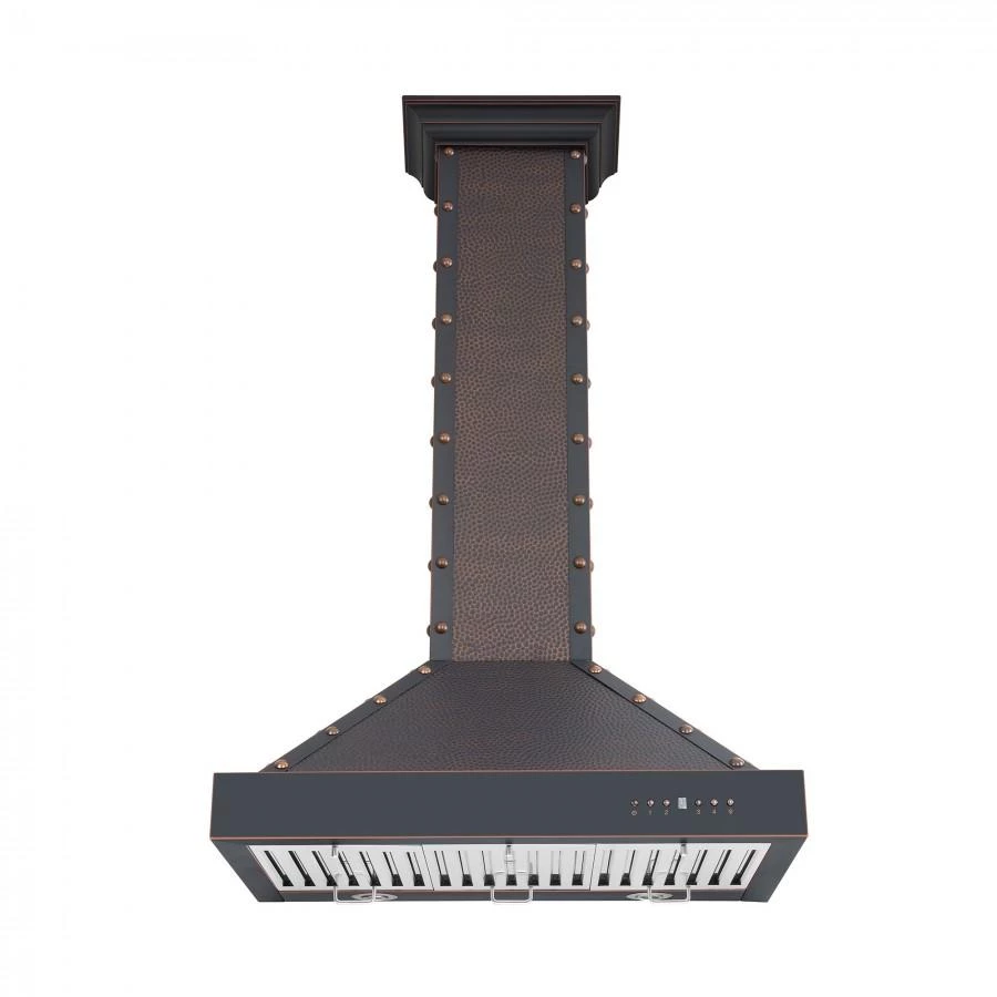 All ZLINE range hoods come equipped with everything needed to easily install and use, including a 30 inch chimney with crown molding. This hood will fit most ceilings up to 10 feet, though the chimney is designed to be cut to fit lower ceilings.