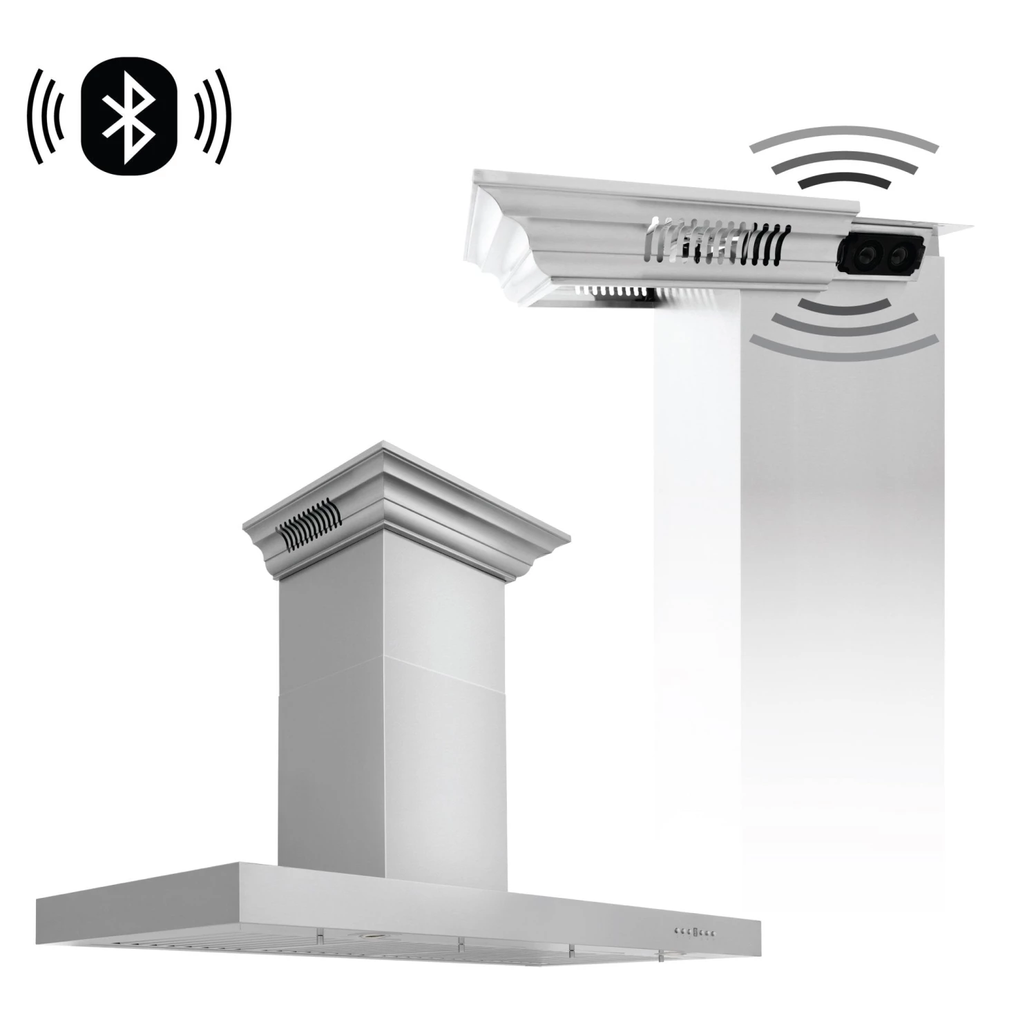 The ZLINE Wall Mount Range Hood with Built-in ZLINE CrownSound® Bluetooth Speakers transforms the seamless, elegant ceiling transition of ZLINE Range Hoods into a high-fidelity, wireless sound system, creating the perfect entertainment area for you and your guests. With ZLINE CrownSound , you can pair your smart device up to 50 feet away for optimal access and control of audio in your kitchen. The high-performance 400 CFM, 4-speed motor provides all the power you need to quietly and efficiently ventilate your kitchen while hosting kitchen dance parties or listening to your favorite podcasts. Achieve a functional, modern upgrade that is perfectly harmonized in your favorite ZLINE Range Hood designs.