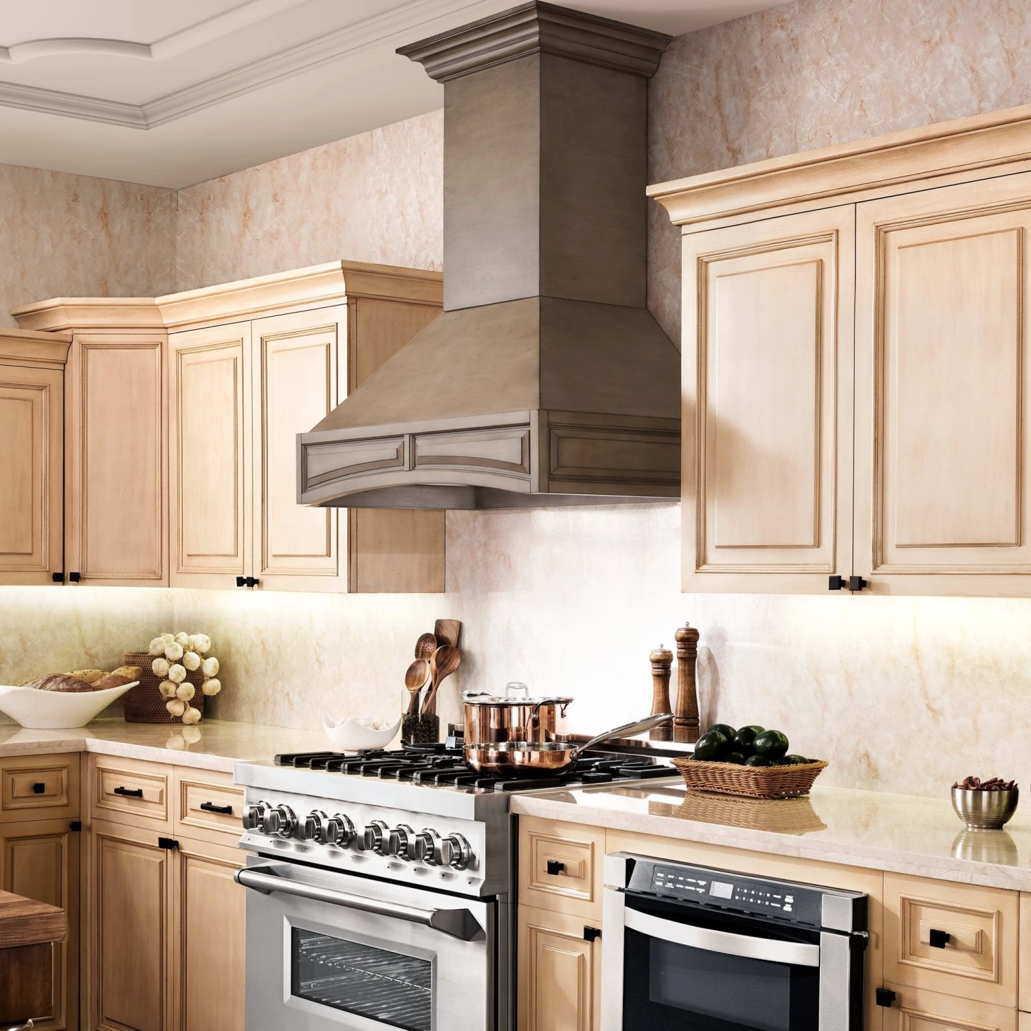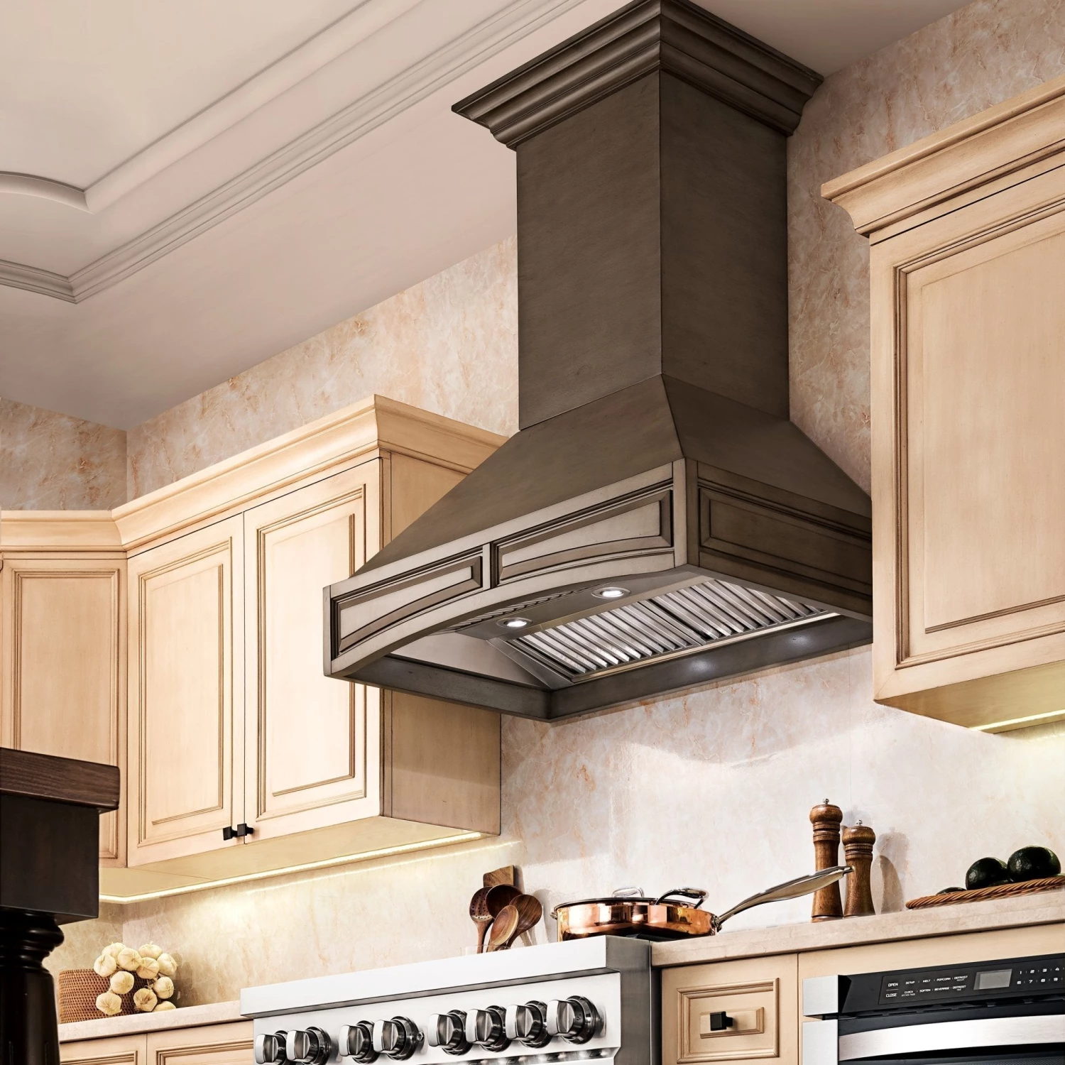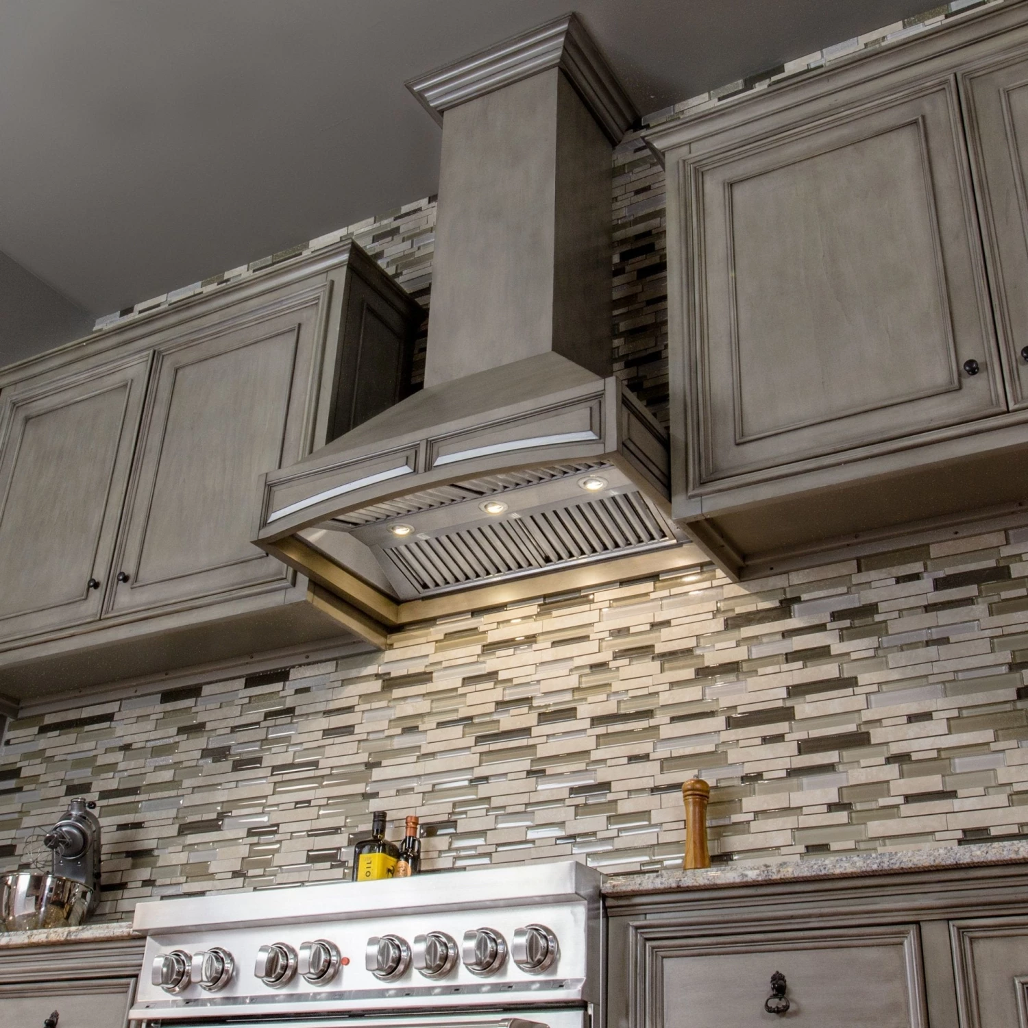 The ZLINE 321GG wall mount wooden range hood designed to be both elegant and powerful, featuring the industry’s only lifetime warranty motor. The hand-finished wood with distressed gray raised-arch paneling and a distressed gray base, is made from solid pine with a stainless steel inner frame, making it both durable and long-lasting. This durable construction, along with ZLINE’s lifetime warranty motor – a ZLINE exclusive – guarantee a range hood that will last for a lifetime.