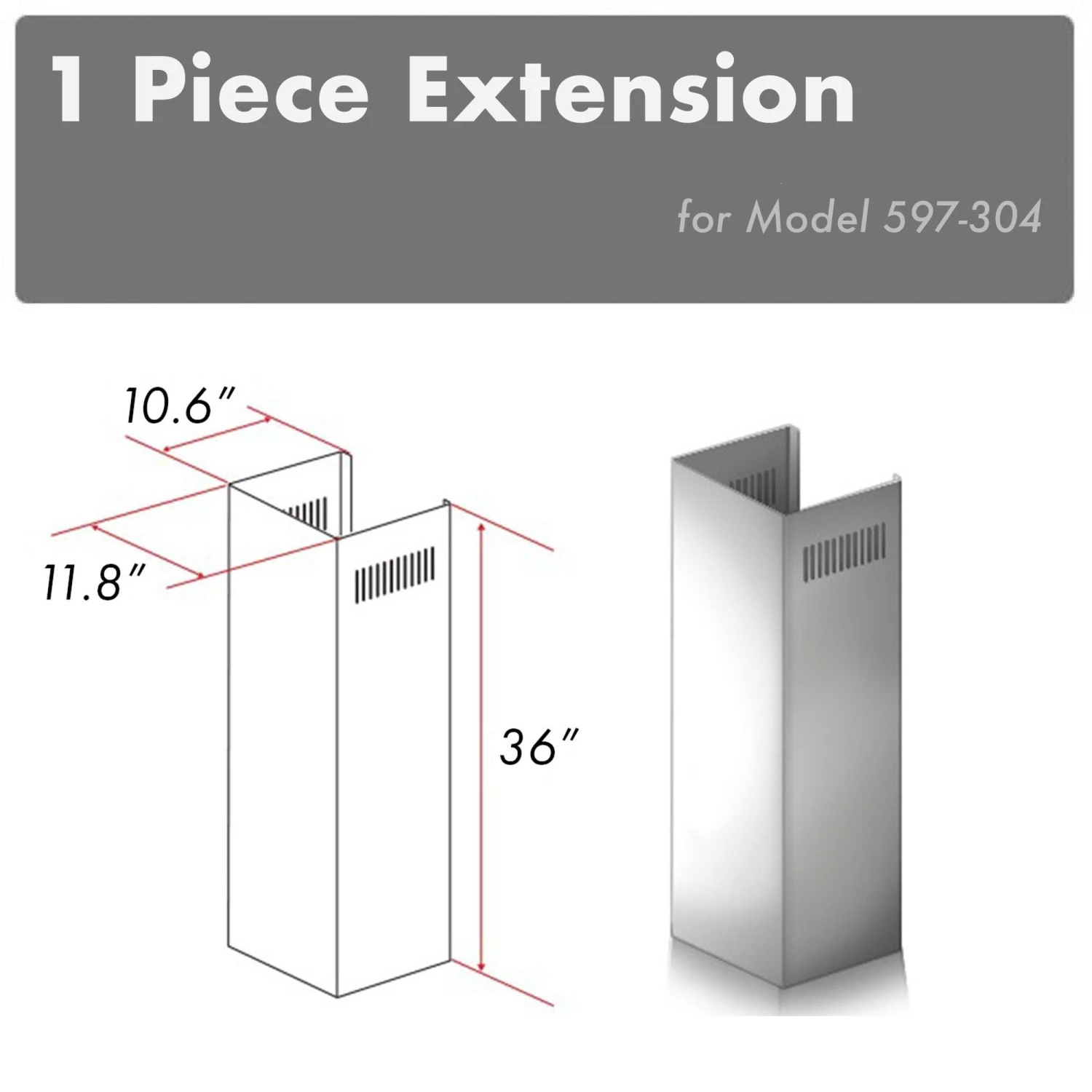 This 1 Piece Chimney Extension will fit all ZLINE range hoods with model number: