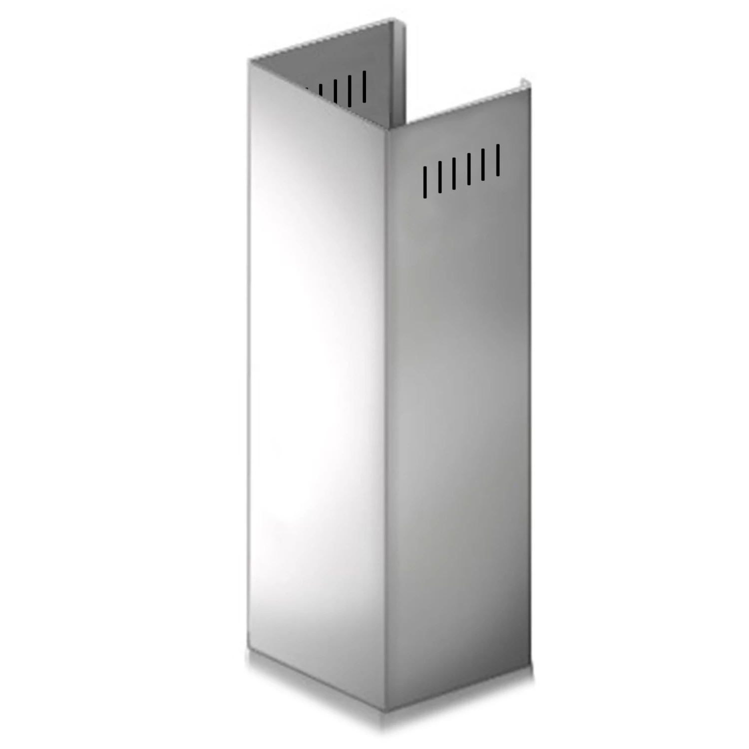 This adjustable 1 piece extension kit will allow for ZLINE Wall Mount Range Hood mounting on 9 ft. to 10 ft. ceilings. One 35.5 in. tall unvented chimney piece will replace one of the two standard 16 in. chimney pieces (supplied with your ZLINE Wall Mount Range Hood) to allow for mounting on 9 ft. to 10 ft. ceilings. Pieces adjust between 35.5 in. to 51 in. This stainless steel finish will match your range hood and add a sleek, elegant look to your home.