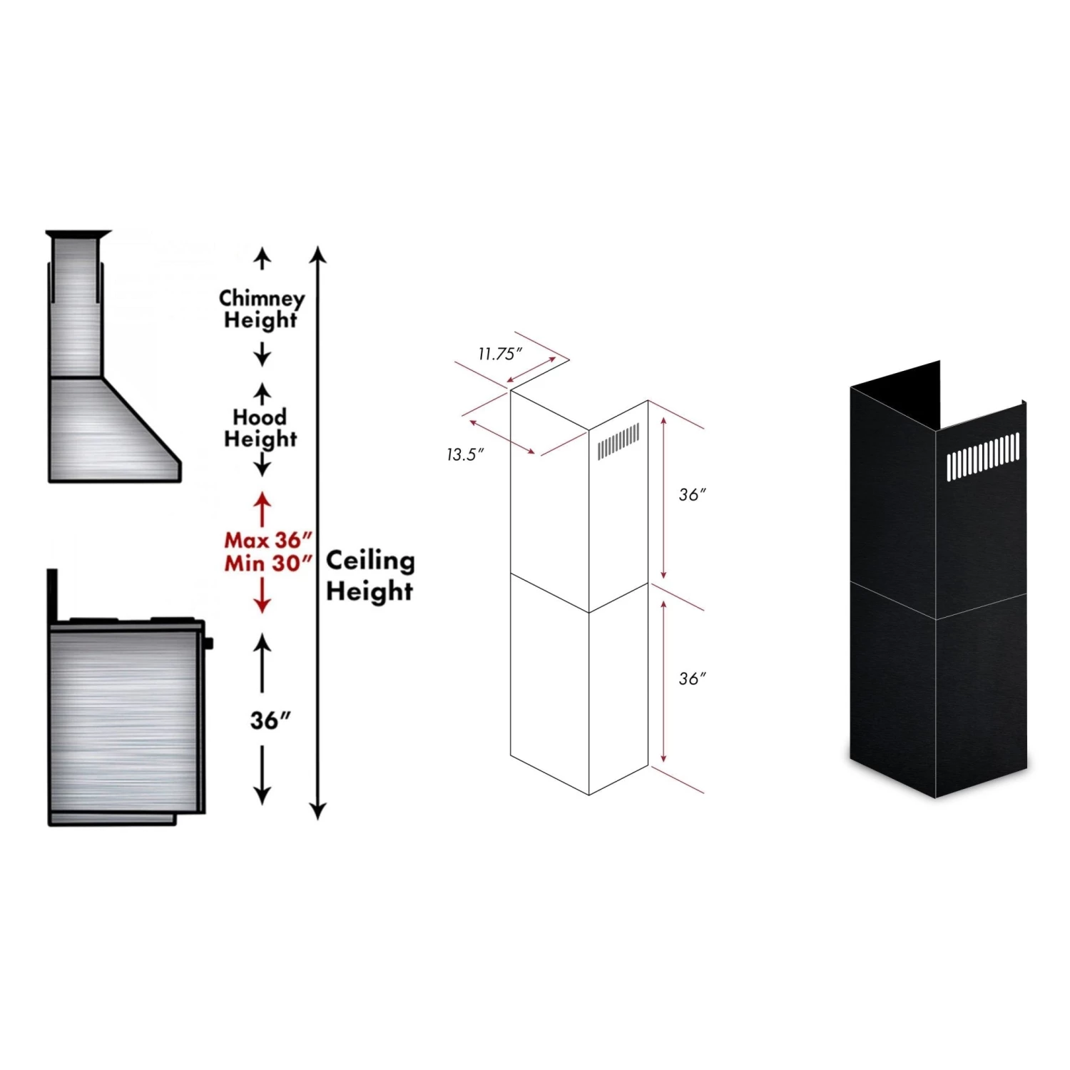 This 2 Piece Chimney Extension will fit all ZLINE range hoods with model number: