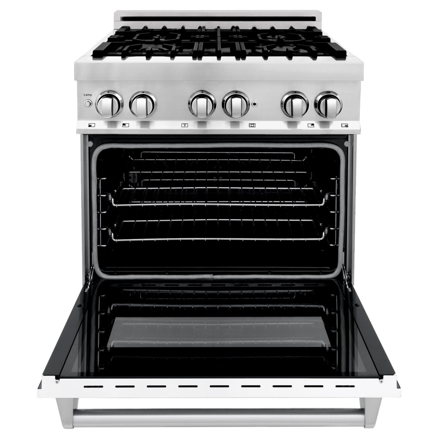 Experience Attainable Luxury® with the ZLINE 30″ Dual Fuel Professional Range. ZLINE’s dual fuel range combines a high performance gas stovetop with an electric convection oven. Providing professional aesthetics and functionality, this stove offers the ultimate luxury experience for a fraction of the cost. Achieve optimal results with cooktop power ranging from 4,200 up to 18,000 BTUs provided with sealed burners. Rely on precise and even heating for every homemade dish with an electric convection oven. Enjoy an ultra-deep oven capacity with a three-layered insulated glass oven for efficient cooking every use. With upgraded premium features such as SmoothSlide ball-bearing oven racks, dual lighting, and adjustable legs, this dual fuel range is certain to wow both the chef and guests alike. Cook with ease with StayPut Italian hinges, providing a safe baking environment to enjoy for years to come. ZLINE stands by the longevity and durability of their professional dual fuel stoves, while ensuring further protection and peace of mind with a worry-free warranty. The ZLINE Dual Fuel Range is packaged in multiple boxes and will ship out together next business day when in stock.