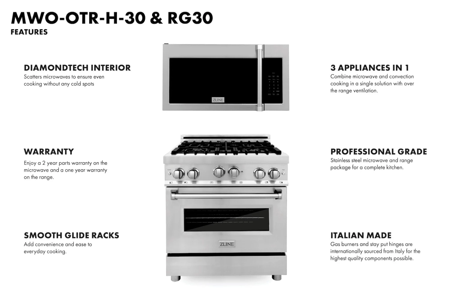 - ZLINE Over the Range Convection Microwave Oven in Stainless Steel with Traditional Handle and Sensor Cooking (MWO-OTR-H-30)