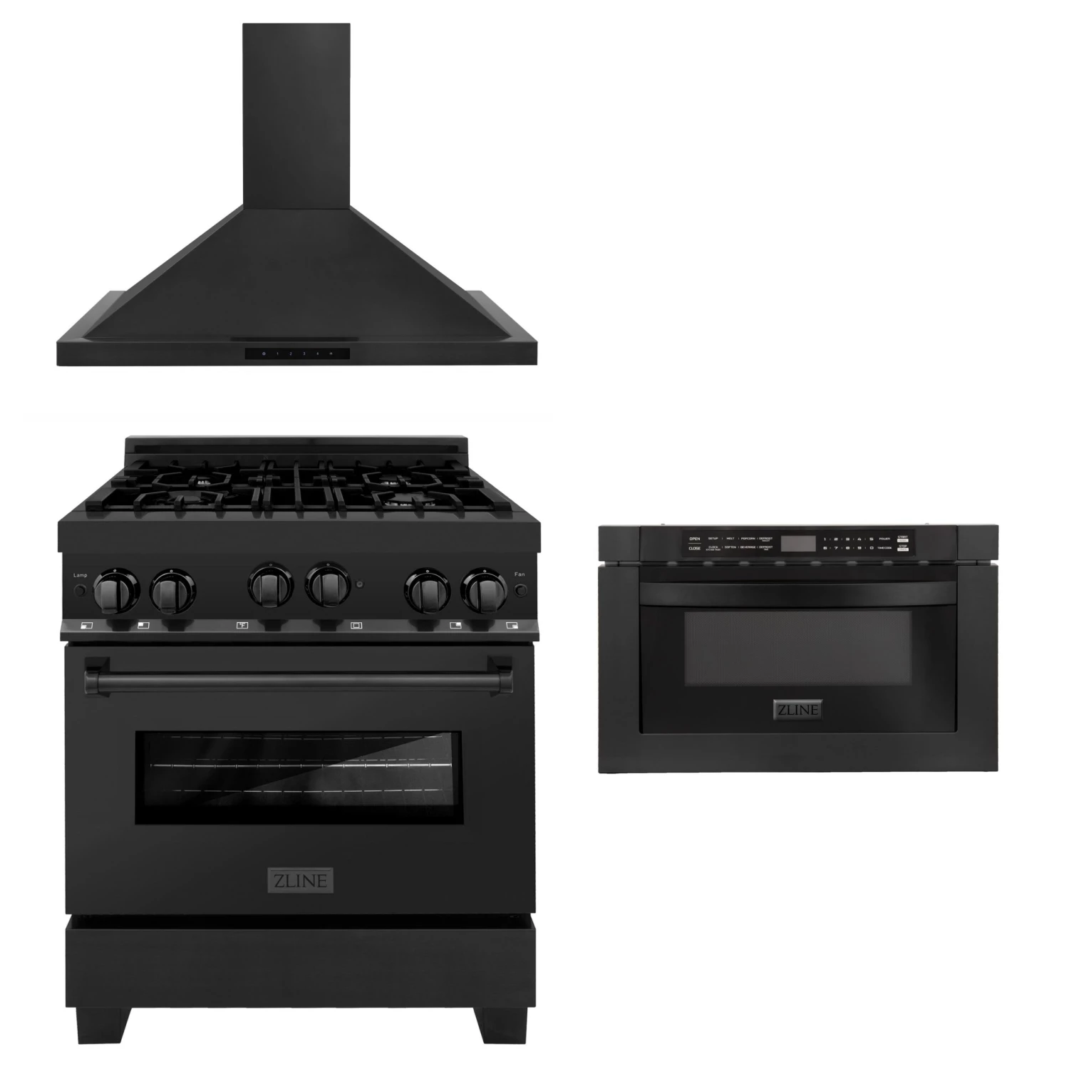 Shop the ZLINE 3-Piece Appliance Package. Completely elevate your kitchen with the ultimate ZLINE kitchen appliance package – featuring the ZLINE 30″ Black Stainless Steel Gas Range, 30″ Convertible Vent Wall Mount Range, Microwave Drawer. Save more when you purchase as a package and leave more in the budget for your dream home.
