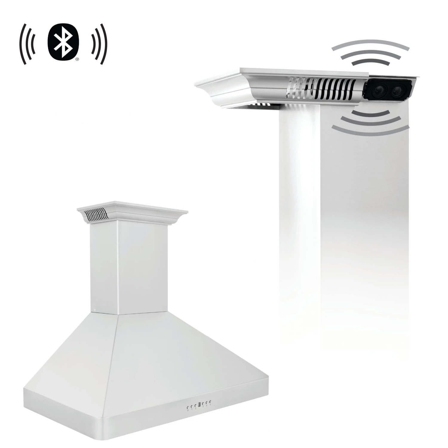 The ZLINE Wall Mount Range Hood with Built-in ZLINE CrownSound Bluetooth Speakers transforms the seamless, elegant ceiling transition of ZLINE Range Hoods into a high-fidelity, wireless sound system, creating the perfect entertainment area for you and your guests. With ZLINE CrownSound, you can pair your smart device up to 50 feet away for optimal access and control of audio in your kitchen. The high-performance 400 CFM, 4-speed motor provides all the power you need to quietly and efficiently ventilate your kitchen while hosting kitchen dance parties or listening to your favorite podcasts. Achieve a functional, modern upgrade that is perfectly harmonized in your favorite ZLINE Range Hood designs.