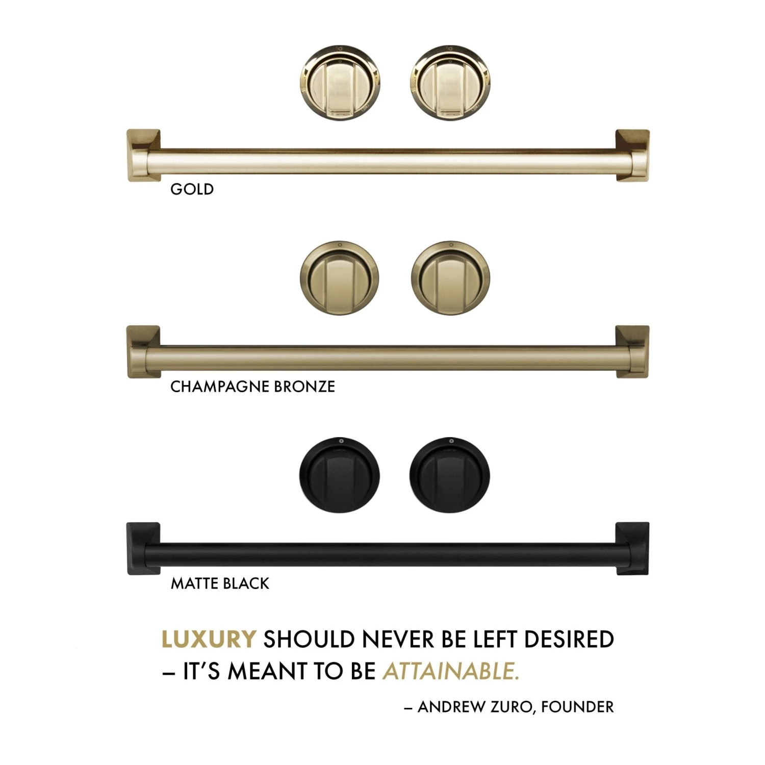 Experience Attainable Luxury with the ZLINE Autograph Edition Gas Range. Inspired by the elegance of our home in Lake Tahoe, the Autograph Edition provides an elevated luxury experience. Each product has been meticulously designed to reflect the unique beauty found in the Lake Tahoe landscapes. Combining the professional power and functionality of a ZLINE Range with stunning accents, this sophisticated line of professional ranges brings a new meaning of elegance. Create an unforgettable kitchen unique to your style with accent colored knobs, handles, legs, and brass burners. Choose from a variety of finishes from ZLINE’s Autograph Edition, including: Champagne Bronze, Matte Black and Gold. The beauty of the Autograph Edition is infinite, just like the beauty found in Lake Tahoe and the Sierra Nevada Landscapes. From our home to yours, enjoy a luxurious experience with every Autograph Edition Range assembled to order in the US.