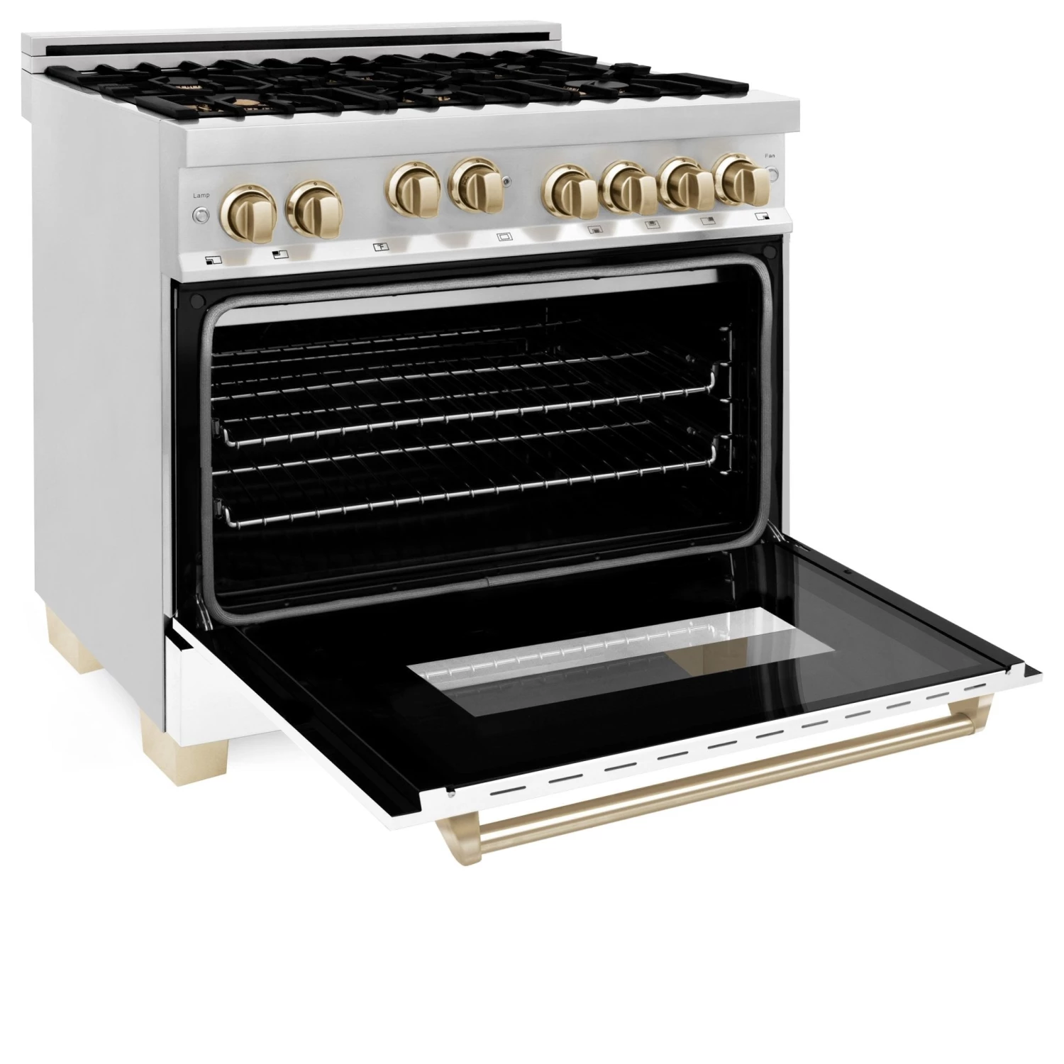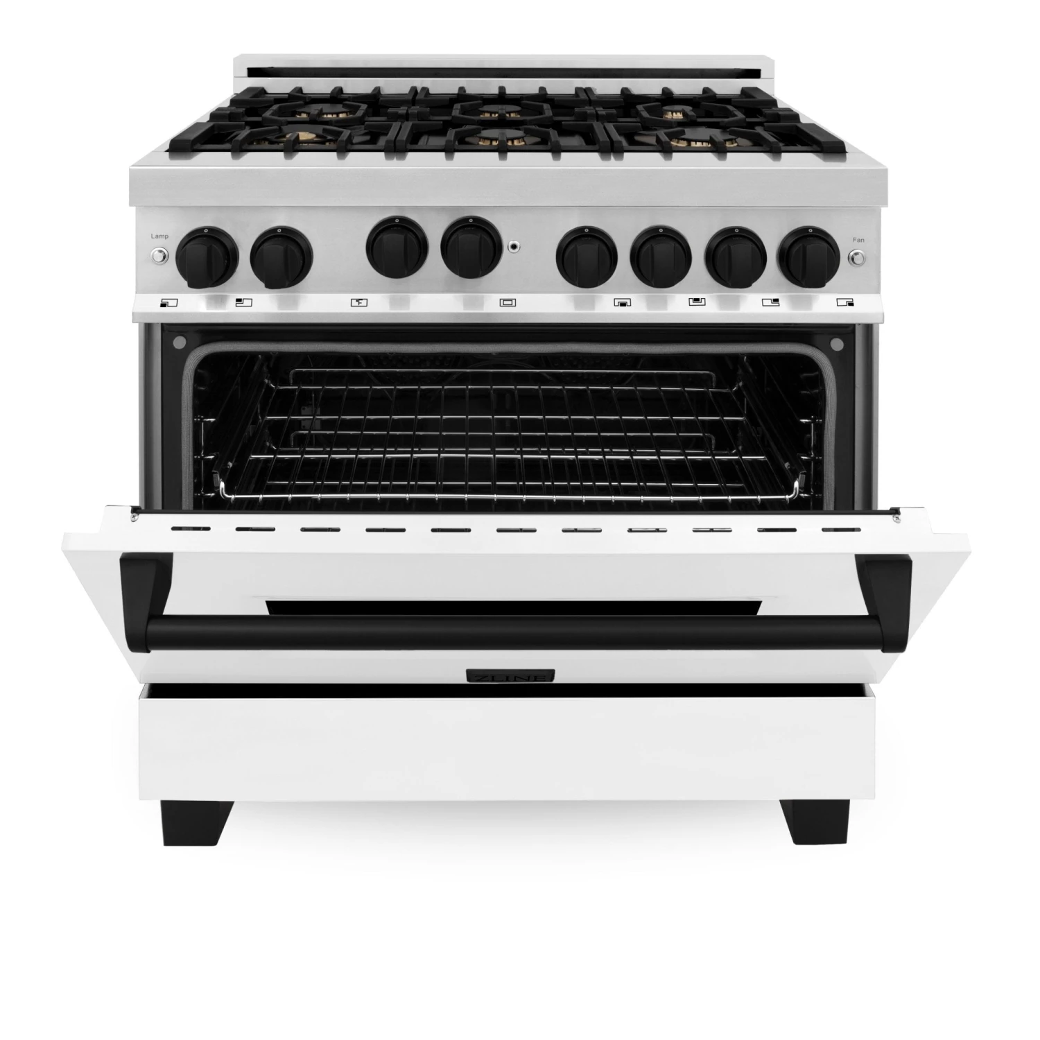 - ZLINE’s Italian brass burners give this range an elevated, timeless pop of color while providing enhanced cooking benefits such as superior heat retention and even flame distribution.
