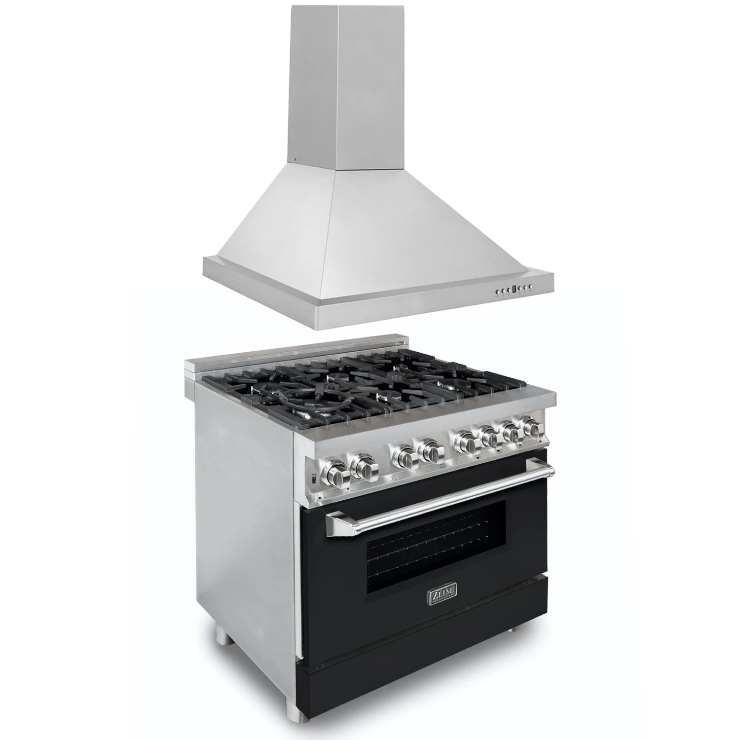- ZLINE 36″ 4.6 cu. ft. Dual Fuel Range with Gas Stove and Electric Oven in Stainless Steel with Black Matte Door (RA-BLM-36)
