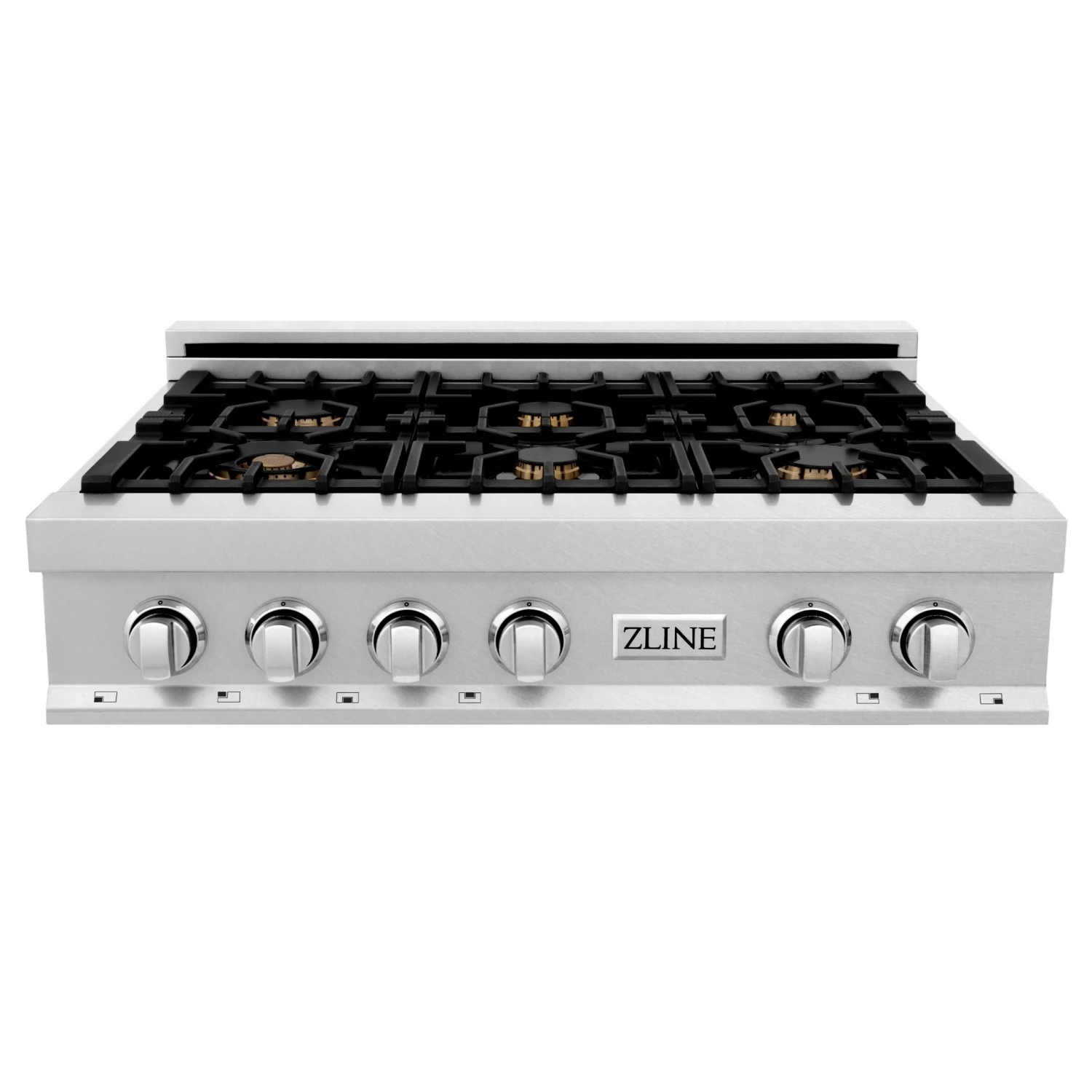 Ignite your culinary experience with the ZLINE Professional 36 in. Gas Stovetop in DuraSnow Stainless Steel with 6 Gas Burners and Griddle. The ZLINE DuraSnow is a revolutionary finish that resembles the classic look of stainless steel, but provides one-of-a-kind durable features such as its fingerprint resistant finish and the ability to effortlessly diminish scratches created from everyday wear and tear. Achieve optimal results with cooking power from 4,200 up to 18,000 BTUs provided with Italian-crafted sealed burners. Assembled with the highest quality materials on the market, this range top comes equipped with a durable, scratch-resistant porcelain cooktop and ZLINE’s premium cast iron grates. Offering an elevated luxury look and professional cooking features, this 6 burner rangetop is designed to impress every guest. ZLINE stands by the longevity and durability of their professional range tops, while ensuring peace of mind with a worry-free warranty. The ZLINE Rangetop ships next business day when in stock.