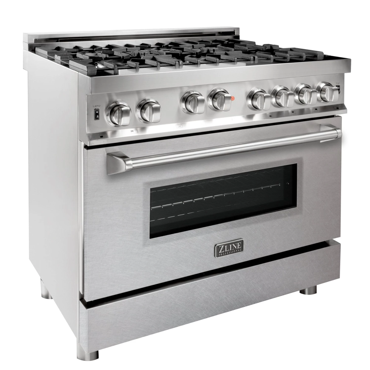 Experience Attainable Luxury® with the ZLINE 36″ All Gas Professional Range. Combining both professional aesthetics and functionality, this gas stove provides the ultimate luxury experience for a fraction of the cost. Achieve optimal results with cooktop power from 4,200 up to 18,000 BTUs provided with sealed burners. Ignite your culinary experience with an all gas oven, allowing for a faster, more efficient heat and moisture distribution. Enjoy an ultra-deep oven capacity with a three-layered insulated glass oven for even, precise cooking every use. With upgraded premium features such as SmoothSlide ball-bearing oven racks, dual lighting, and adjustable legs, this gas range is certain to wow both the chef and guests alike. Assembled with the highest quality materials on the market, this gas oven offers a durable, scratch-resistant porcelain cooktop and ZLINE’s exclusive single piece cast iron grate. Cook with ease with StayPut Italian hinges, providing a safe baking environment to enjoy for years to come. ZLINE stands by the longevity and durability of their professional gas stoves, while ensuring further protection and peace of mind with a worry-free warranty. The ZLINE Gas Range is packaged in multiple boxes and will ship out together next business day when in stock.