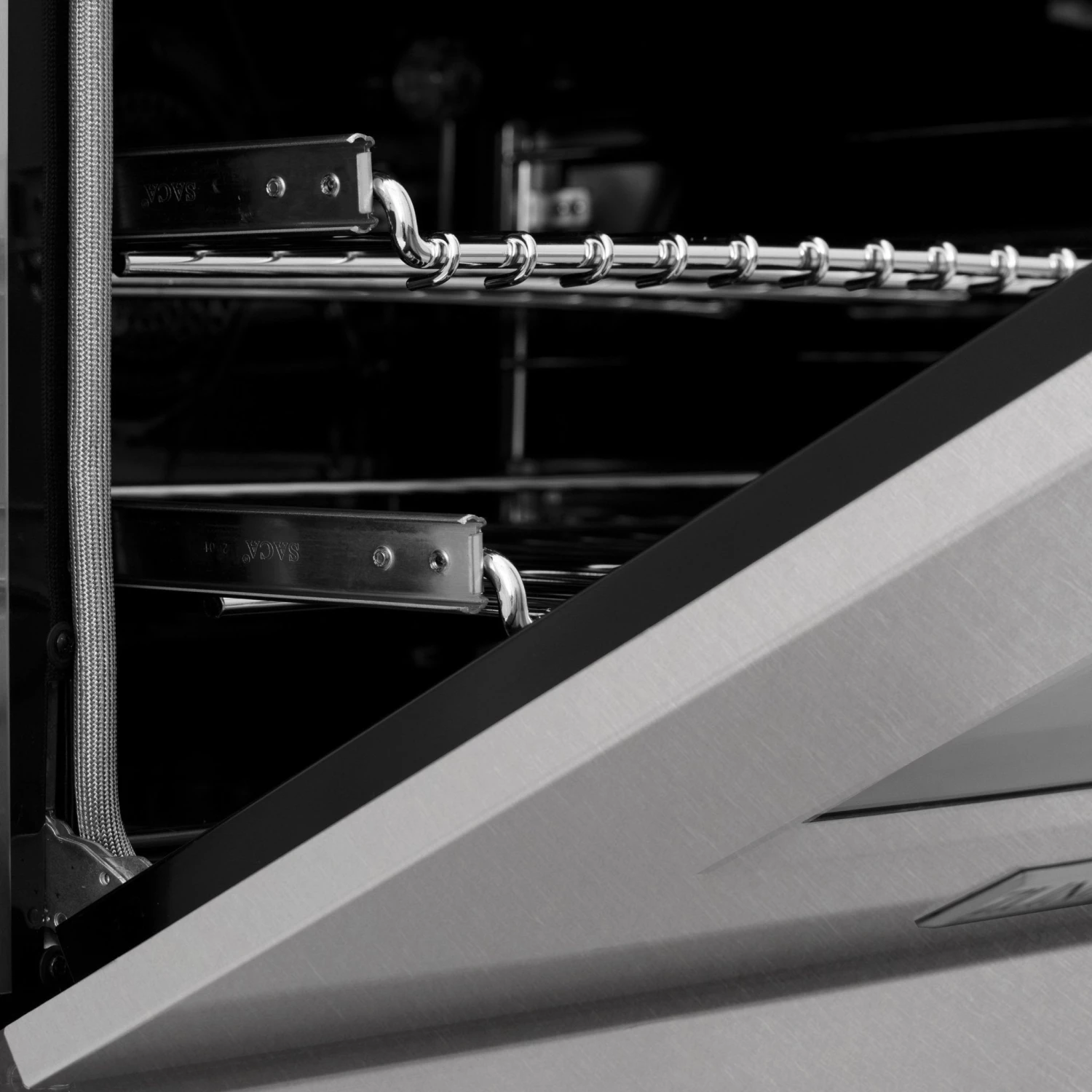 Experience Attainable Luxury® with the ZLINE 36″ DuraSnow® Dual Fuel Professional Range. ZLINE’s dual fuel range combines a high performance gas stovetop with an electric convection oven. Providing both professional aesthetics and functionality, this dual fuel stove provides the ultimate luxury experience for a fraction of the cost. ZLINE’s exclusive DuraSnow® finish features a timeless non-directional fingerprint-resistant finish, allowing you to easily combat everyday wear and tear. Achieve optimal results with cooktop cooking power from 4,200 up to 18,000 BTUs provided with sealed burners. Rely on precise and even heating for every homemade dish with an electric convection oven. Enjoy an ultra-deep oven capacity with a three-layered insulated glass oven for efficient cooking every use. With upgraded premium features such as SmoothSlide ball-bearing oven racks, dual lighting, and adjustable legs, this range is certain to wow both the chef and guests alike. Assembled with the highest quality materials on the market, this range offers a durable, scratch-resistant porcelain cooktop and ZLINE’s exclusive single piece cast iron grate. Cook with ease with StayPut Italian hinges, providing a safe baking environment to enjoy for years to come. ZLINE stands by the longevity and durability of their professional dual fuel stoves, while ensuring further protection and peace of mind with a worry-free warranty. The ZLINE Dual Fuel Range ships next business day when in stock.