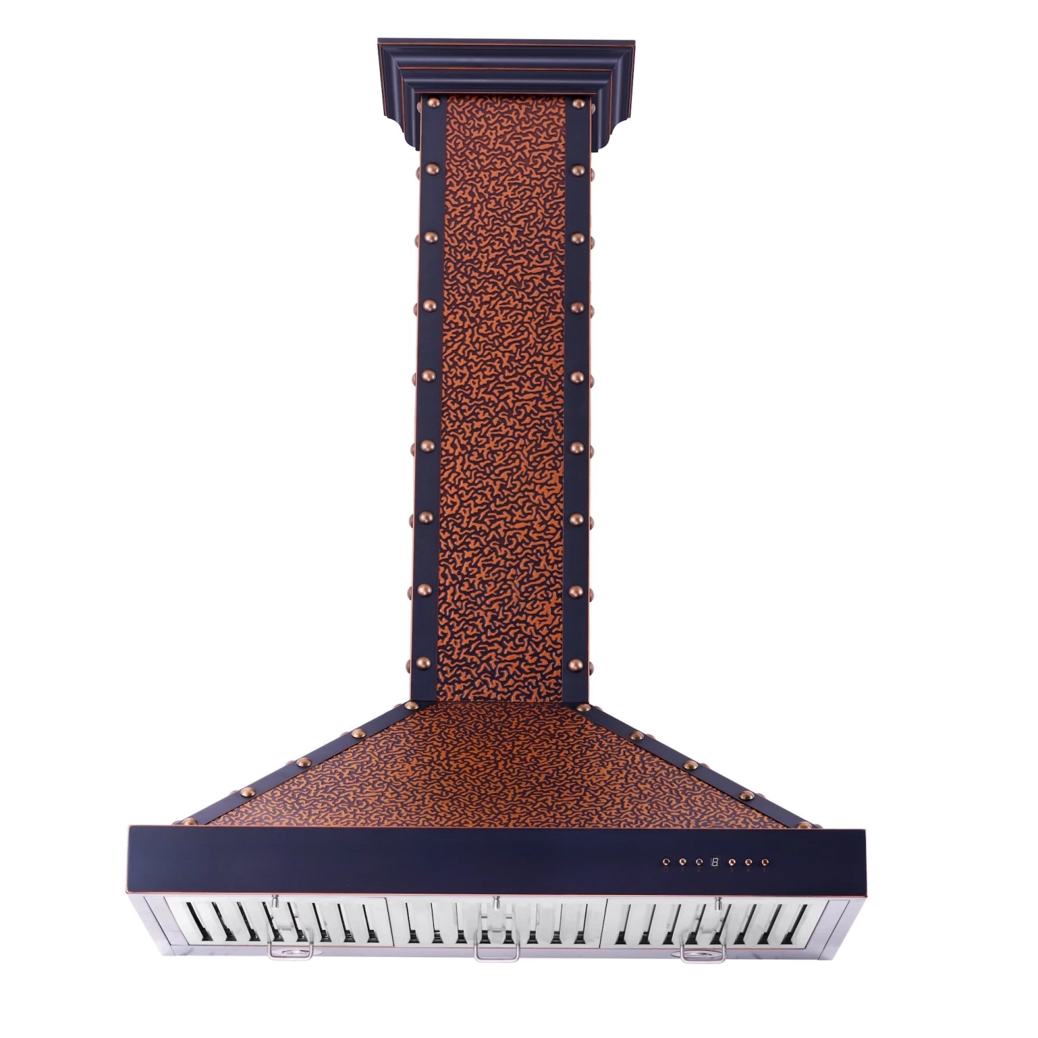 This modern copper hood contains many unique features, such as: