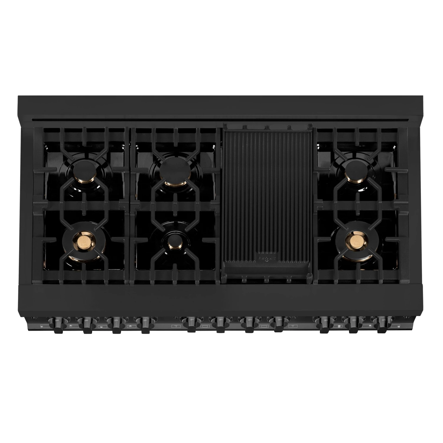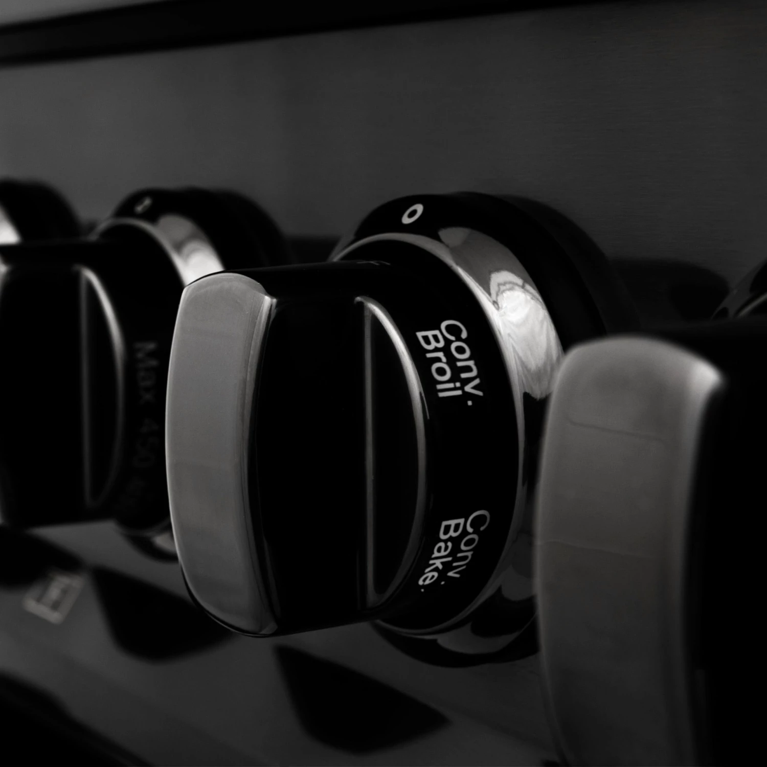 Experience Attainable Luxury® with the ZLINE Dual Fuel Professional Range in Black Stainless Steel with Brass Burners. Each piece is hand cut and crafted utilizing premium grade stainless steel which accomplishes its sophisticated “piano black” finish through a technique called PVD (Physical Vapor Deposition) Coating. Also known as sputtering, this technique utilizes a vaporization process to create an atom-bonded, strong ceramic layer in order to achieve its stunning black stainless shine and built-to-last quality. The PVD ceramic layer is composed of abrasion-resistant material, ensuring that its pristine finish will be enjoyed for years to come. The proprietary black stainless steel finish is hand soaked in a specific ratio which depicts the final and exact result of the black stainless hue. The black stainless steel paired with the brass burners give each range an elevated, timeless pop of color while providing enhanced cooking benefits. Not only will you achieve a luxury look, but the brass material provides superior heat retention and even flame distribution. Each brass burner contains corrosion, stain, and grime-resistant properties, further ensuring its unmatched, built-to-last quality. Enjoy superb cooking for each meal with simmering as low as 4,200 BTUs and searing as high as 18,000 BTUs. Satisfy the entire dinner party with an ultra-deep oven capacity and three-layer insulated glass oven. Achieve the ultimate luxury look and feel with this professional kitchen staple. Cook with ease with StayPut Italian hinges, providing a safe baking environment to enjoy for years to come. ZLINE stands by the longevity and durability of their professional ranges, while ensuring further protection and peace of mind with a worry-free warranty. The ZLINE Dual Fuel Range ships next business day when in stock.