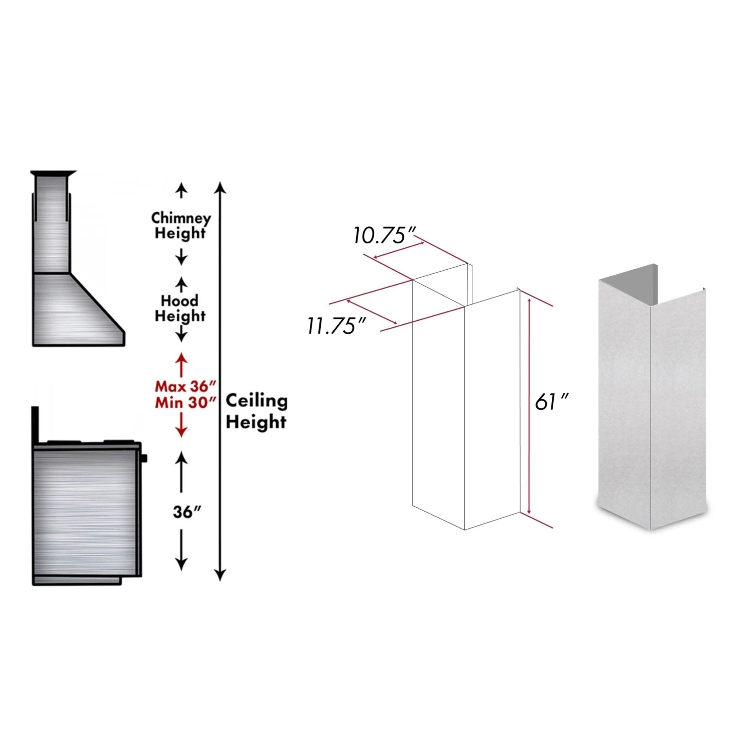 This 1 Piece Chimney Extension will fit all ZLINE range hoods with model number: