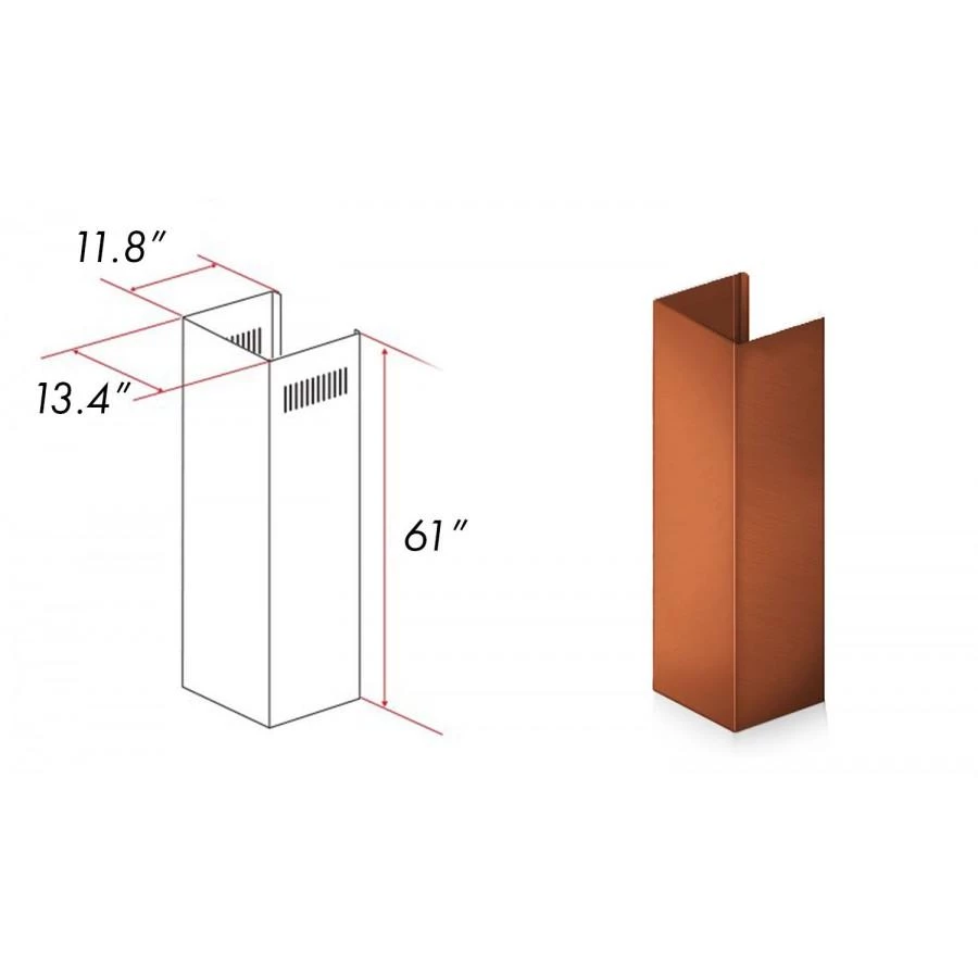 ZLINE 6 ft. Copper Chimney Extension for Ceilings up to 12.5 ft. This 72″ tall chimney piece must be custom cut to the appropriate size. For use with all ZLINE 8667C range hoods.