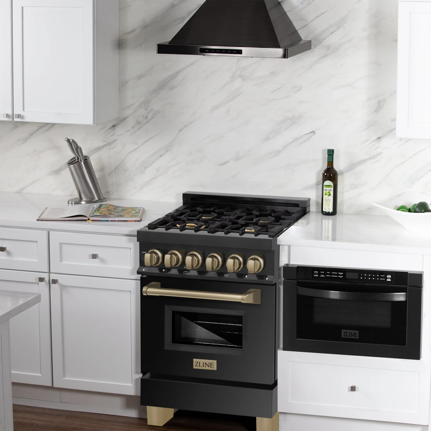ZLINE Autograph Edition 24″ Dual Fuel Range in Black Stainless Steel