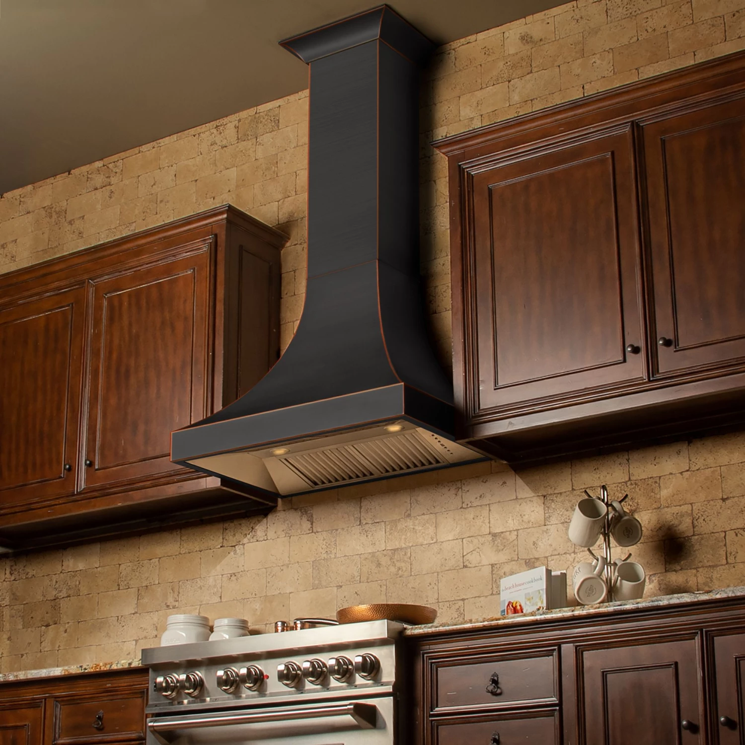 The ZLINE 8632B is a 30 professional wall mount stainless steel range hood with a modern design and built-to-last quality, making it a great addition to any kitchen. The professional Oil Rubbed Bronze hood is made from 304 grade stainless steel, featuring ZLINE’s proprietary hand-rubbed 7-layer copper finish. This hood’s high-performance, 500 CFM 4-speed motor will provide all the power you need to quietly and efficiently ventilate your stove while cooking. Enjoy modern features, including built-in LED lighting for an illuminated culinary experience and dishwasher-safe stainless steel baffle filters for easy clean-up. This wall mount range hood has a ducted vent with easy, simple installation. Experience Attainable Luxury® in the heart of your home, with a ZLINE range hood. ZLINE Kitchen and Bath stands by all products with its manufacturer parts warranty. The 8632B ships next business day when in stock.