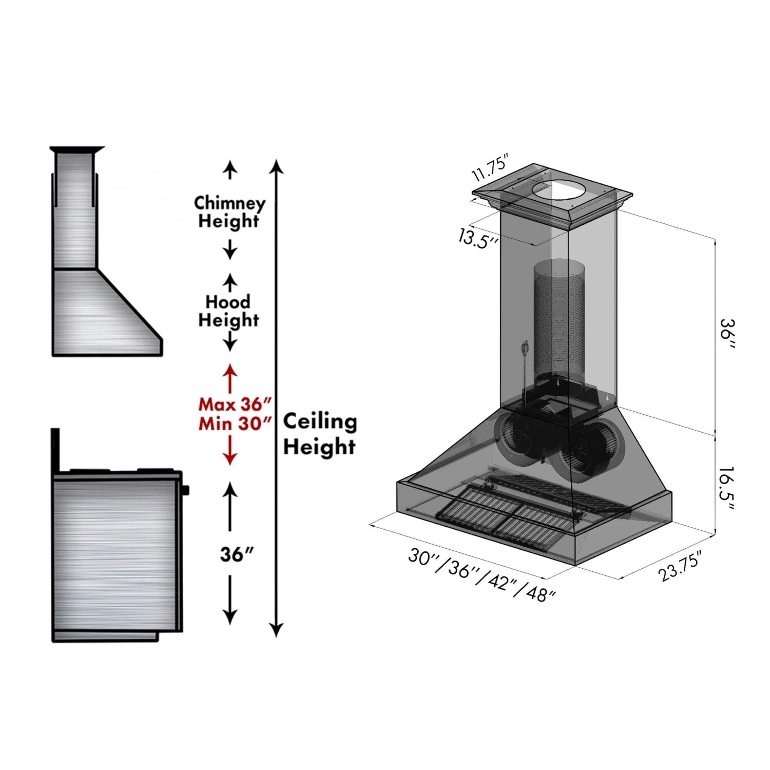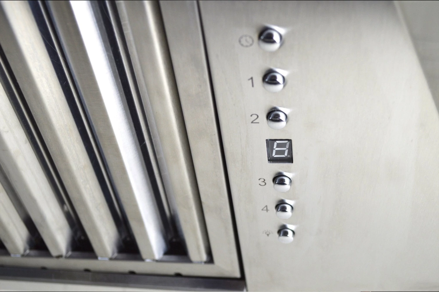 Please note the position of a grill lid can block the range hood filters and decrease range hood performance. We recommend moving the range hood to accommodate your grill lid or ensure range hood depth will surpass the size of the grill and mounted 38-42 neys to ensure the perfect fit. For our Designer Series hoods, we provide a one-piece chimney that can be cut to size.