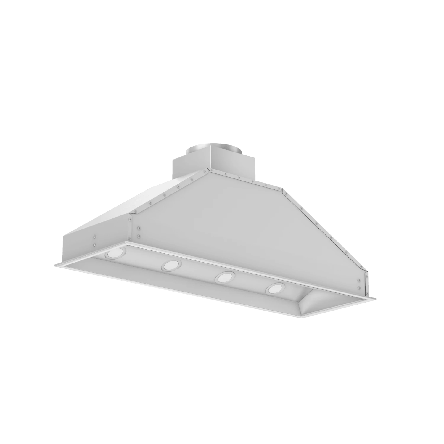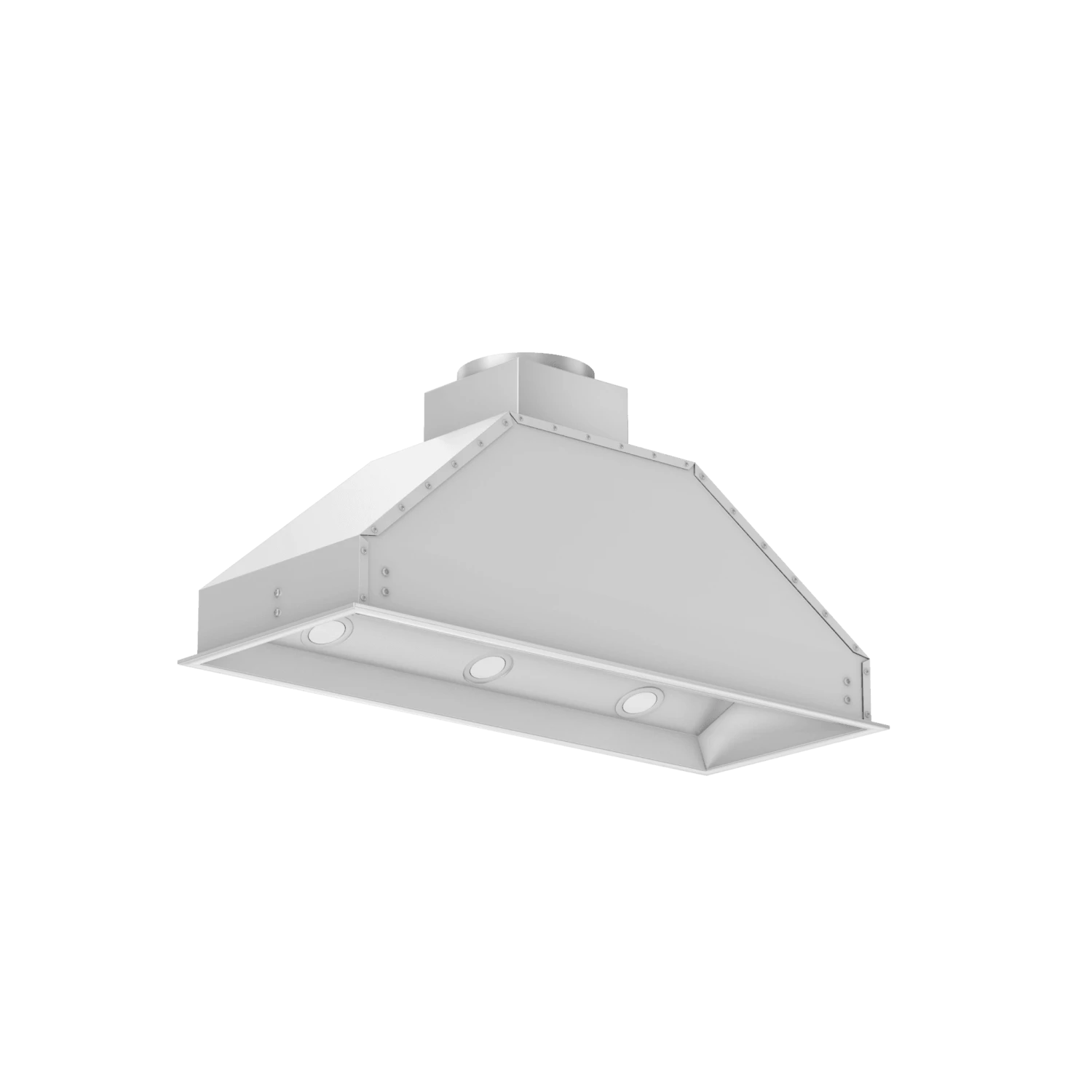 The ZLINE 695-RD is a professional wall mount range hood insert with a remote blower with a modern design and built-to-last quality, making it a great addition to any kitchen. This hood’s high-performance, 4-speed motor will provide all the power you need to quietly and efficiently ventilate your stove while cooking. The motor for this hood is remotely installed in an attic or crawl space to provide powerful venting with significantly reduced noise in your kitchen. With its classic 430 grade stainless steel, this range hood contains rust, temperature, and corrosion-resistant properties to ensure a durable vent hood that will last for years to come. Enjoy modern features, including built-in LED lighting for an illuminated culinary experience and dishwasher-safe stainless steel baffle filters for easy clean-up. This wall mount range hood insert has a ducted vent with easy, simple installation. Experience Attainable Luxury in the heart of your home, with a ZLINE range hood. ZLINE Kitchen and Bath stands by all products with its manufacturer parts warranty. The 695-RD ships next business day when in stock.
