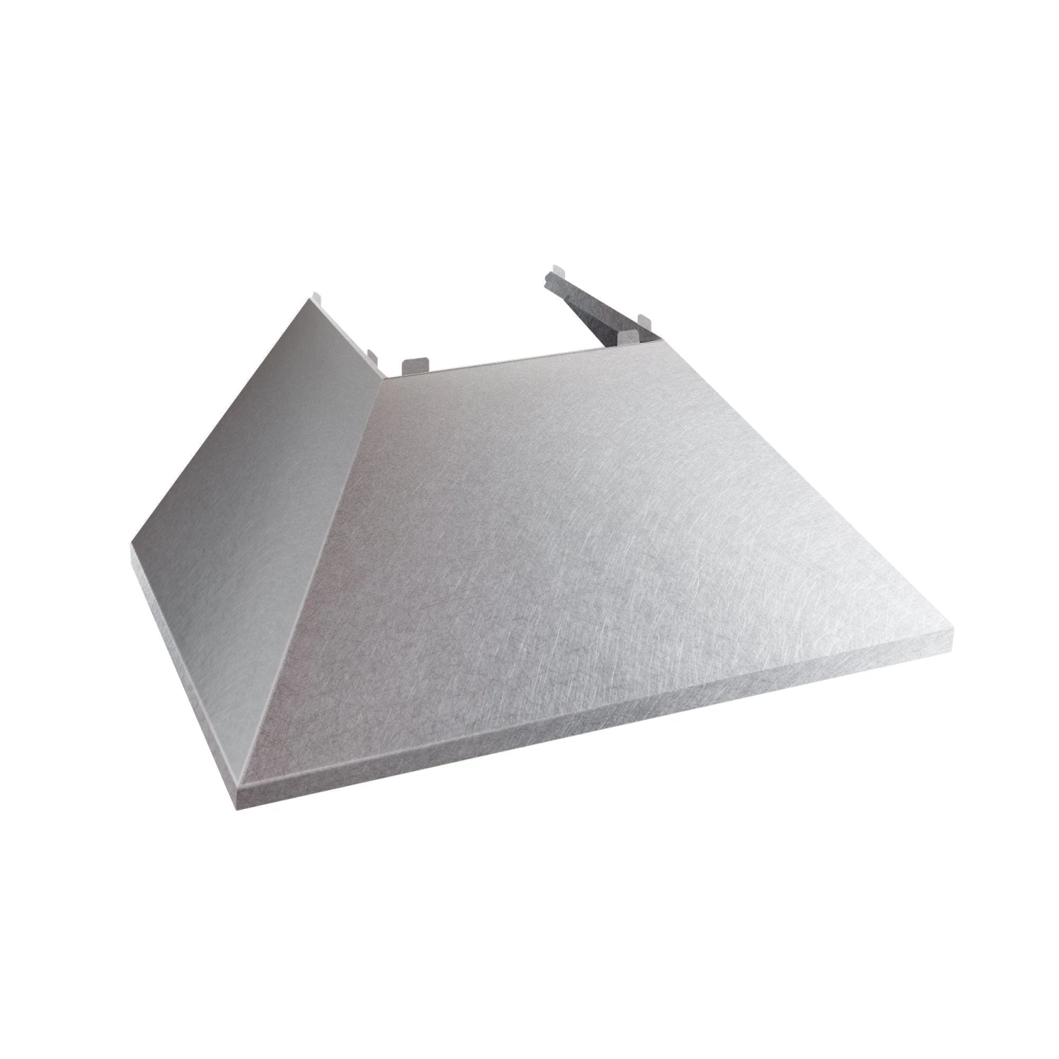 Please note the position of a grill lid can block the range hood filters and decrease range hood performance. We recommend moving the range hood to accommodate your grill lid or ensure range hood depth will surpass the size of the grill and mounted 38-42 neys to ensure the perfect fit. For our Designer Series hoods, we provide a one-piece chimney that can be cut to size.
