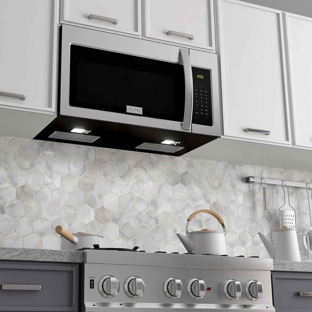 Experience ZLINE Attainable Luxury with industry-leading kitchen and bath products that provide an elevated luxury experience, all designed in Lake Tahoe, USA. The ZLINE 30″ Over The Range Microwave in Stainless Steel with Modern Handle combines precise, high performance technology with seamless integration, creating all the things you love into one superior, designer kitchen appliance. Professional innovation of a range hood is seamlessly integrated with the aesthetics and functionality of a convection microwave oven. Heating and functionality are flawlessly unified with DiamondTech, a diamond interior that scatters microwaves to ensure even cooking without any cold spots. With up to 900 watts of power, humidity sensor cooking, auto-defrost and convection cook settings, the Over The Range Microwave ensures optimal results for every home-cooked meal. Effortlessly remove the fumes and grease from stovetop cooking with up to 300 CFM, while simultaneously heating up every snack with smart, combination cooking. ZLINE continues to revolutionize the industry by providing our customers with ZLINE Attainable Luxury. ZLINE proudly stands by the longevity and durability of their Over The Range Microwaves.