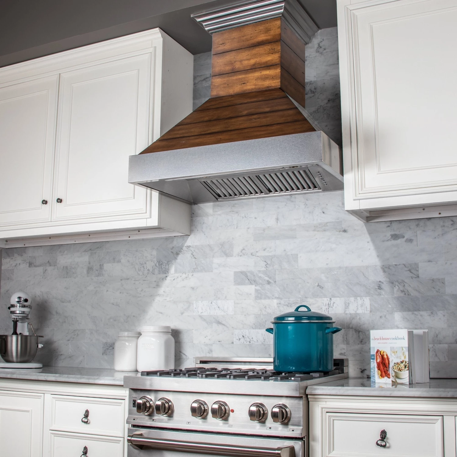 ZLINE Wooden Wall Range Hood with Stainless Steel Accent (365BB) is designed to be both elegant and powerful, featuring the industry’s only lifetime warranty motor. The Panelled Wood Grain is made from solid Birch with Stainless Steel Accents, and a stainless steel inner frame, making it both durable and long-lasting. This durable construction, along with ZLINE’s lifetime warranty motor – a ZLINE exclusive – guarantee a range hood that will last for a lifetime.